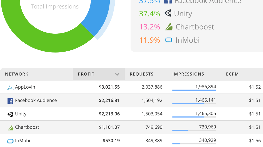 Are you making the most revenue per impression? With all of your revenue data in one place you can quickly and easily benchmark ad networks and optimize your waterfall to give you the most.