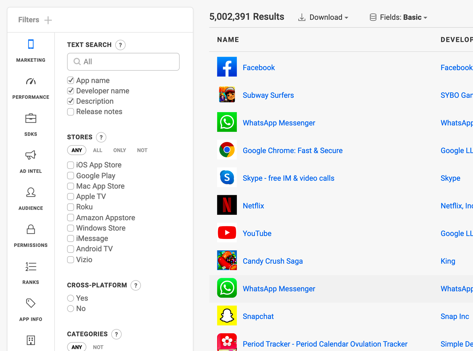 Appbase collects and normalizes app metadata from millions of mobile, desktop, and connected TV apps, providing you with a single interface and data model for all.